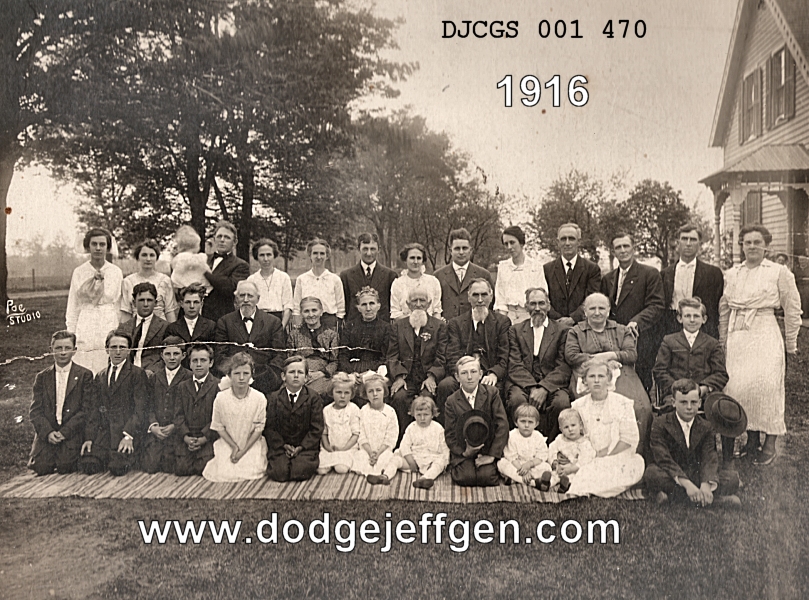 BACK ROW: Leona Gartzke Hayes, Norma Buske Bliesner, Herman Buske, Ina Buske, Amanda Gartzke, Robert Gartzke, Clara Dames , Emil Dames, Lydia Oestreich, Carl Oestreich, Albert Oestreich, Frank Oestreich, Mrs. Frank Oestreich.