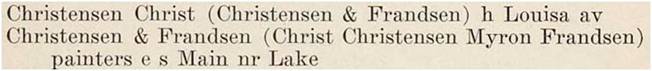 Relation of Stanley to Christ unknown. Stanley is not listed in 1908 Lake Mills City Directory and Christ is the only Christensen associated with Christensen & Frandson.