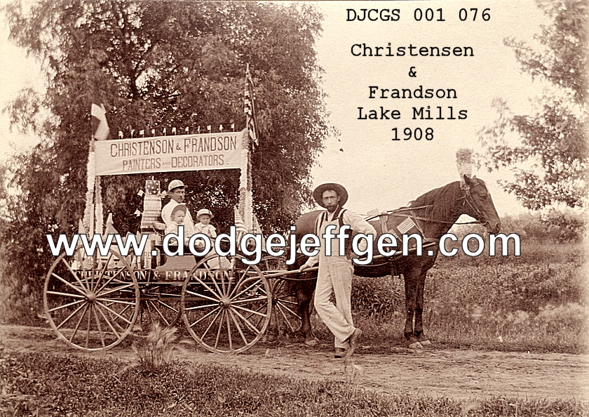 1908 Lake Mills City Directory has spelling of “Frandsen” but photo clearly shows “Frandson”